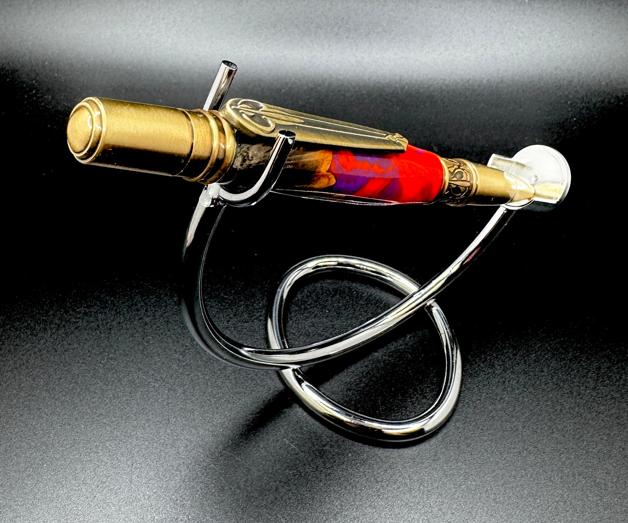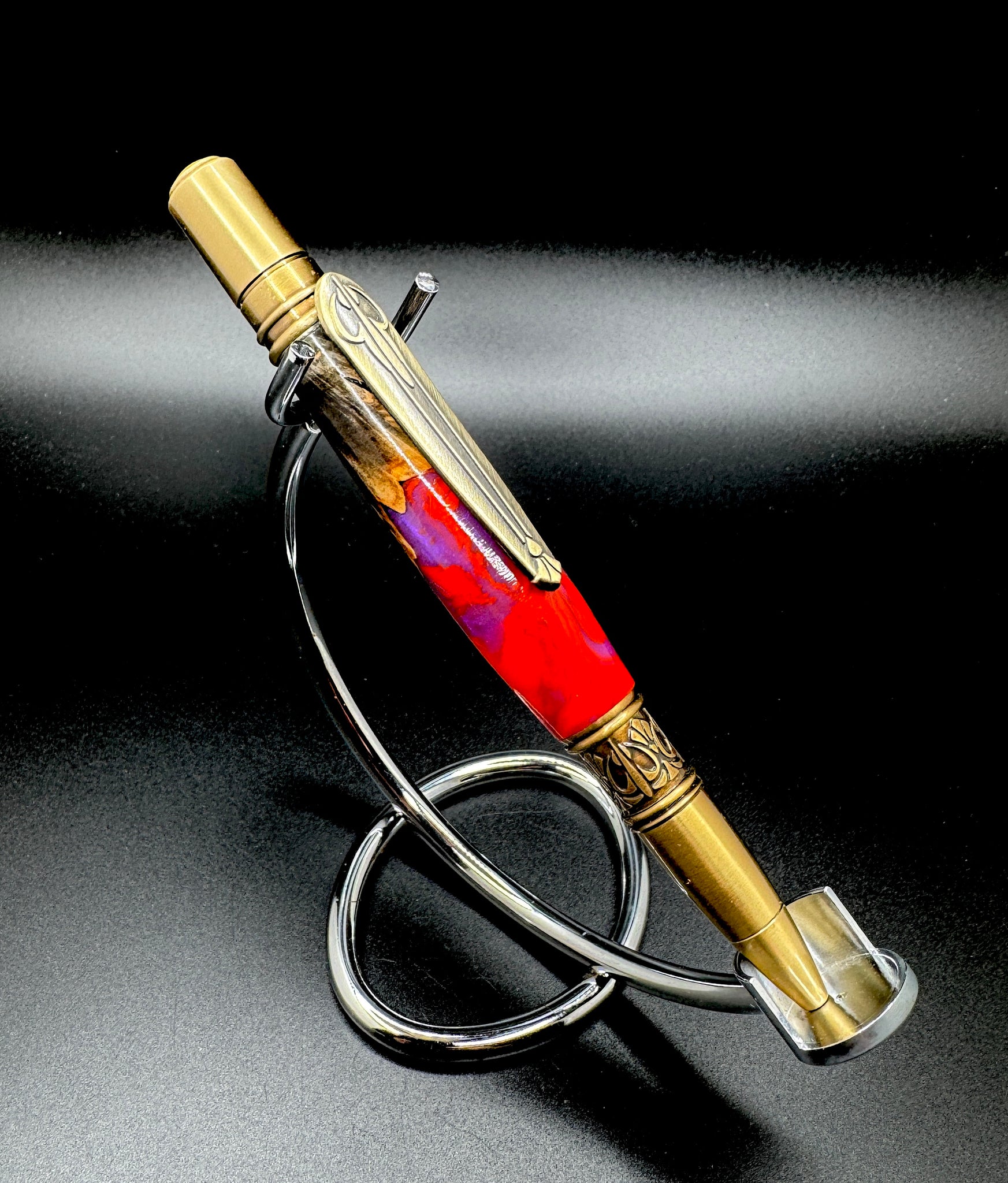 Stabilized maple burl paired with red and purple Alumilite resin.