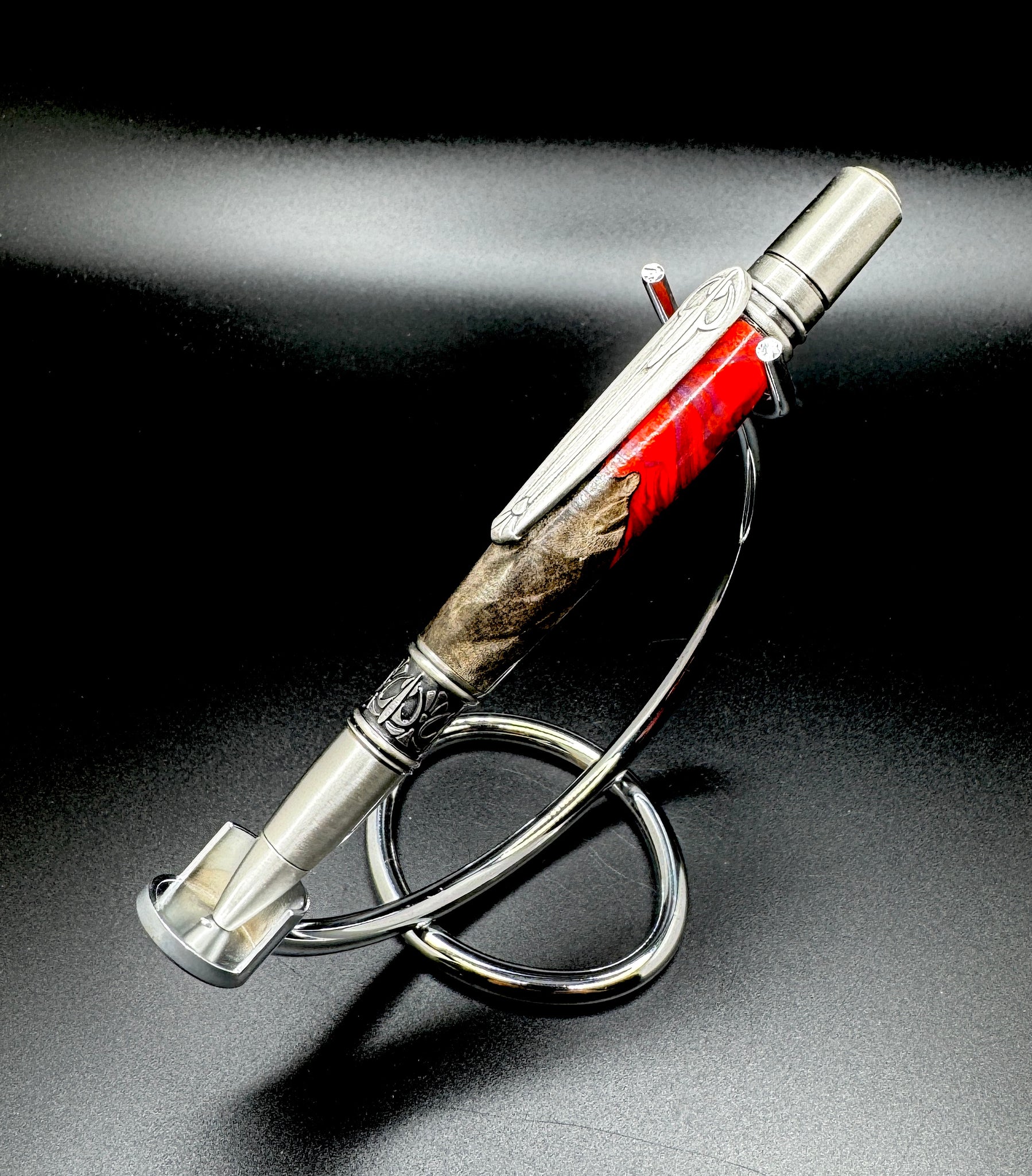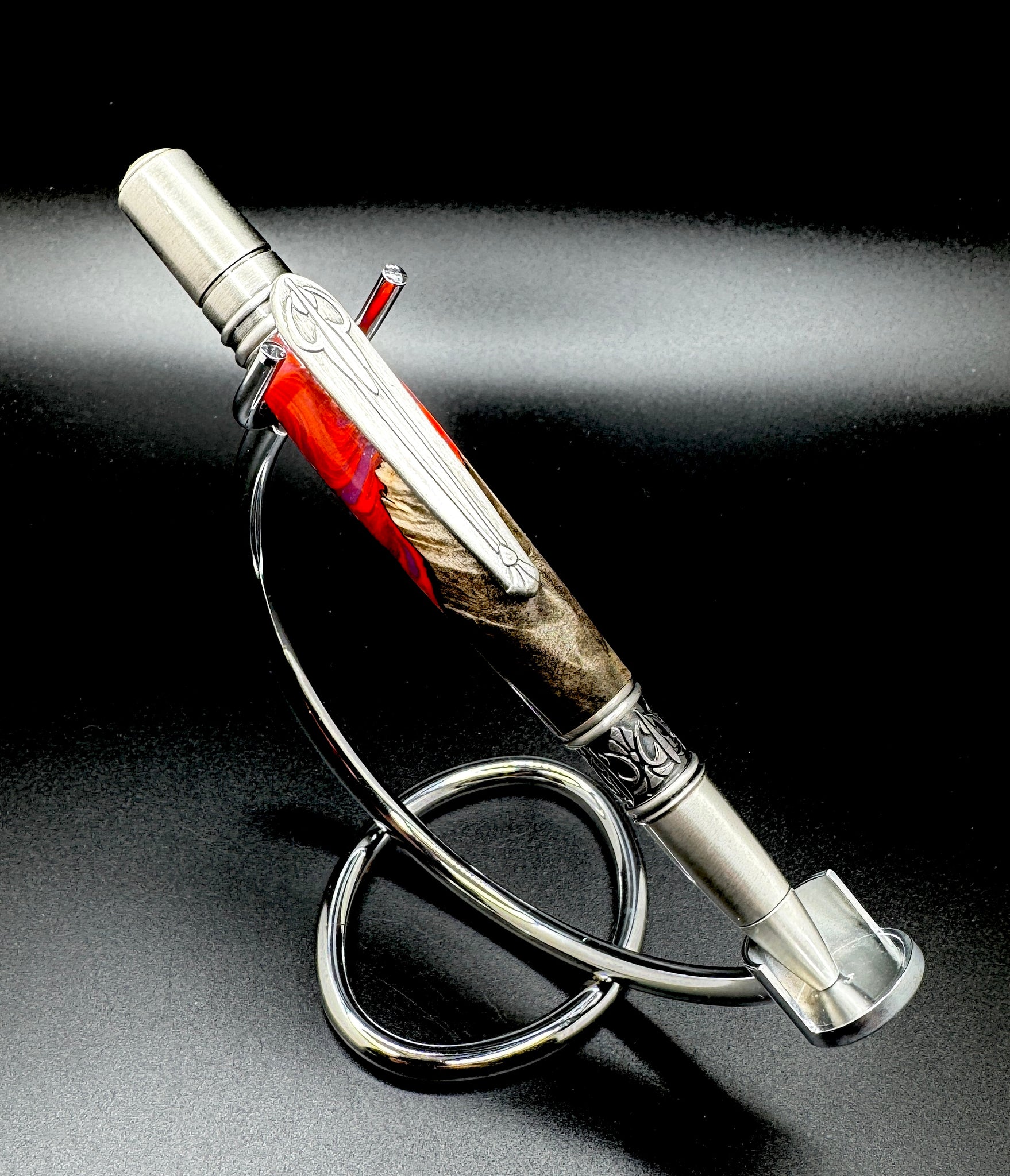 Stabilized maple burl paired with red and purple Alumilite resin.