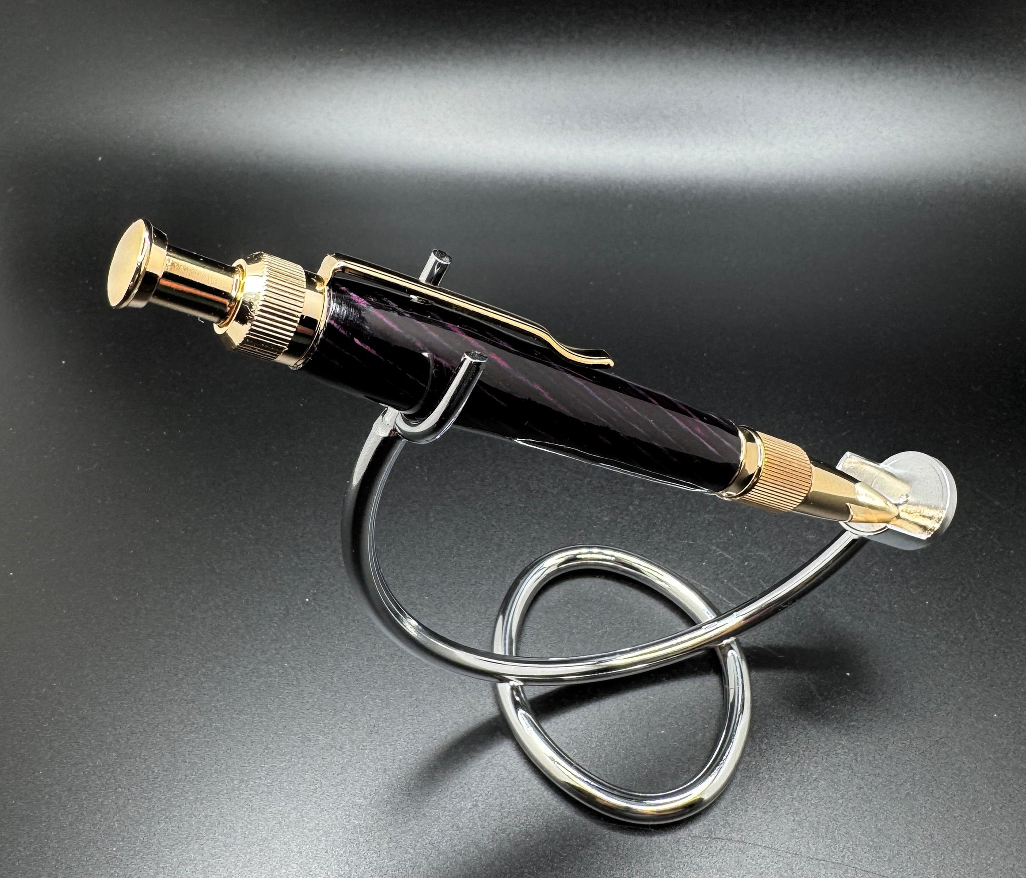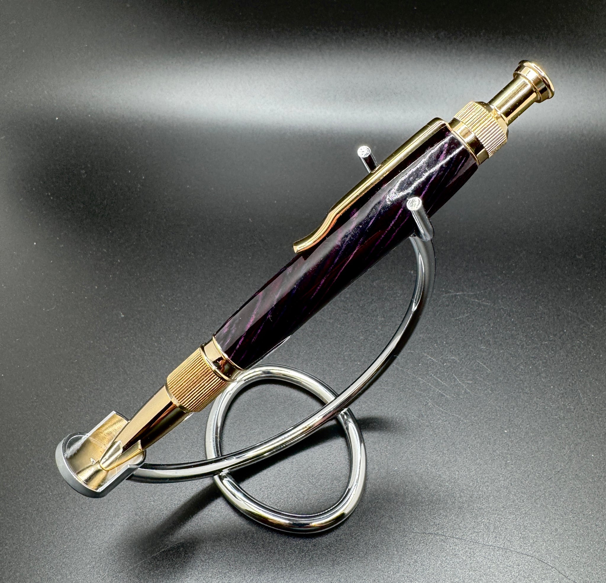 Purple plywood coated many times with CA glue and polished to a gloss finish..