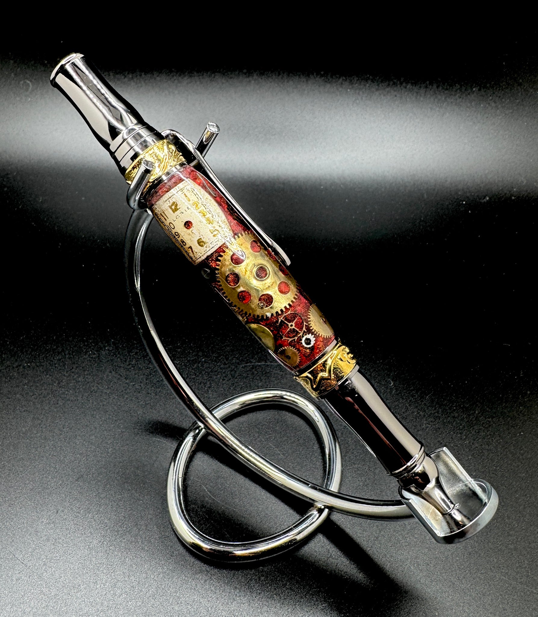 Gun metal finish with gold accents.
